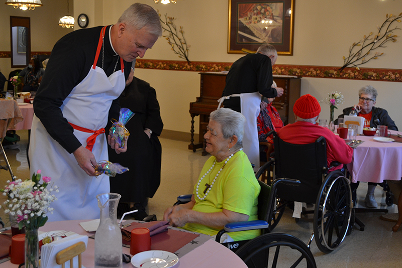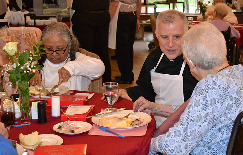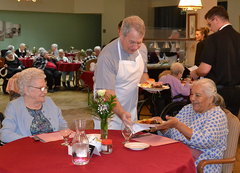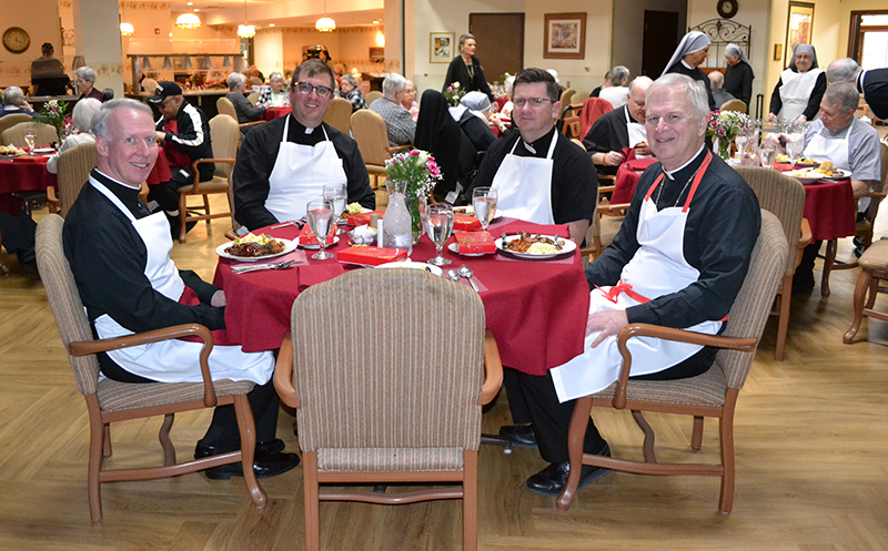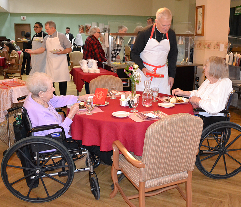 It started with a lovely Mass that was celebrated by Bishop Johnston. After Mass, the priests joined the Bishop in serving our Residents a special lunch. This is a tradition that goes back many years in our homes and the Residents thoroughly enjoyed interacting with them. Afterwards, the Bishop and priests enjoyed a meal together, along with a chance to socialize. It was a wonderful day, and something we look forward to doing again next year.