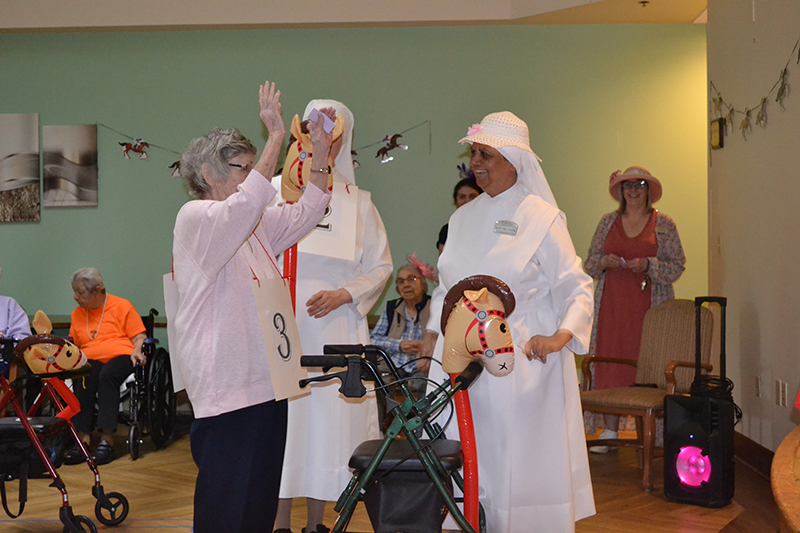 We may be a long way from Kentucky, but that didn’t stop us from celebrating the fun of the Kentucky Derby with our own races right here at the Jeanne Jugan Center.