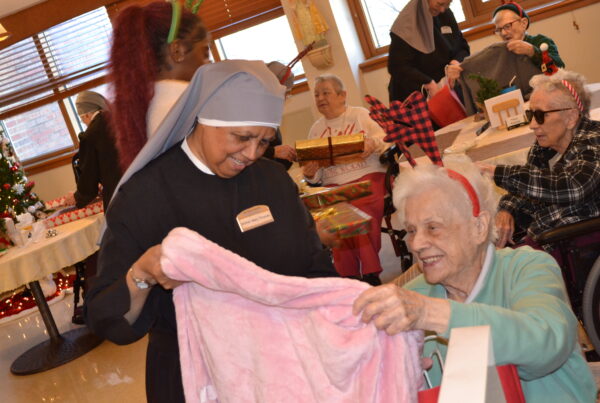 Our Residents took advantage of a nice day last week and spent some time outdoors having fun. The weather was a perfect 80 degrees, with a slight breeze and low humidity. The activities department set up games to enjoy – there was cornhole, bubble-blowing, and even axe throwing! (No worries, the axes were made of plastic and very light weight!)